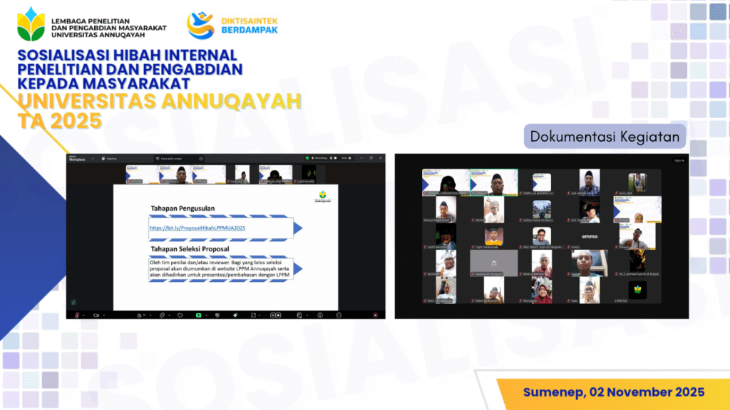 Sumenep — LPPM (Lembaga Penelitian dan Pengabdian Kepada Masyarakat) Universitas Annuqayah menyelenggarakan Klinik Proposal Penelitian Hibah Litapdimas Diktis Kementerian Agama Tahun 2026, Senin (19/1/2026), bertempat di Aula KH Abdul Basith AS, Universitas Annuqayah. Kegiatan ini berlangsung sejak pukul 08.00 hingga Baca selengkapnya…..